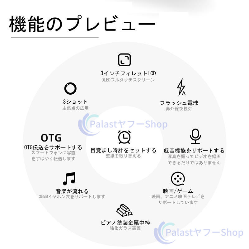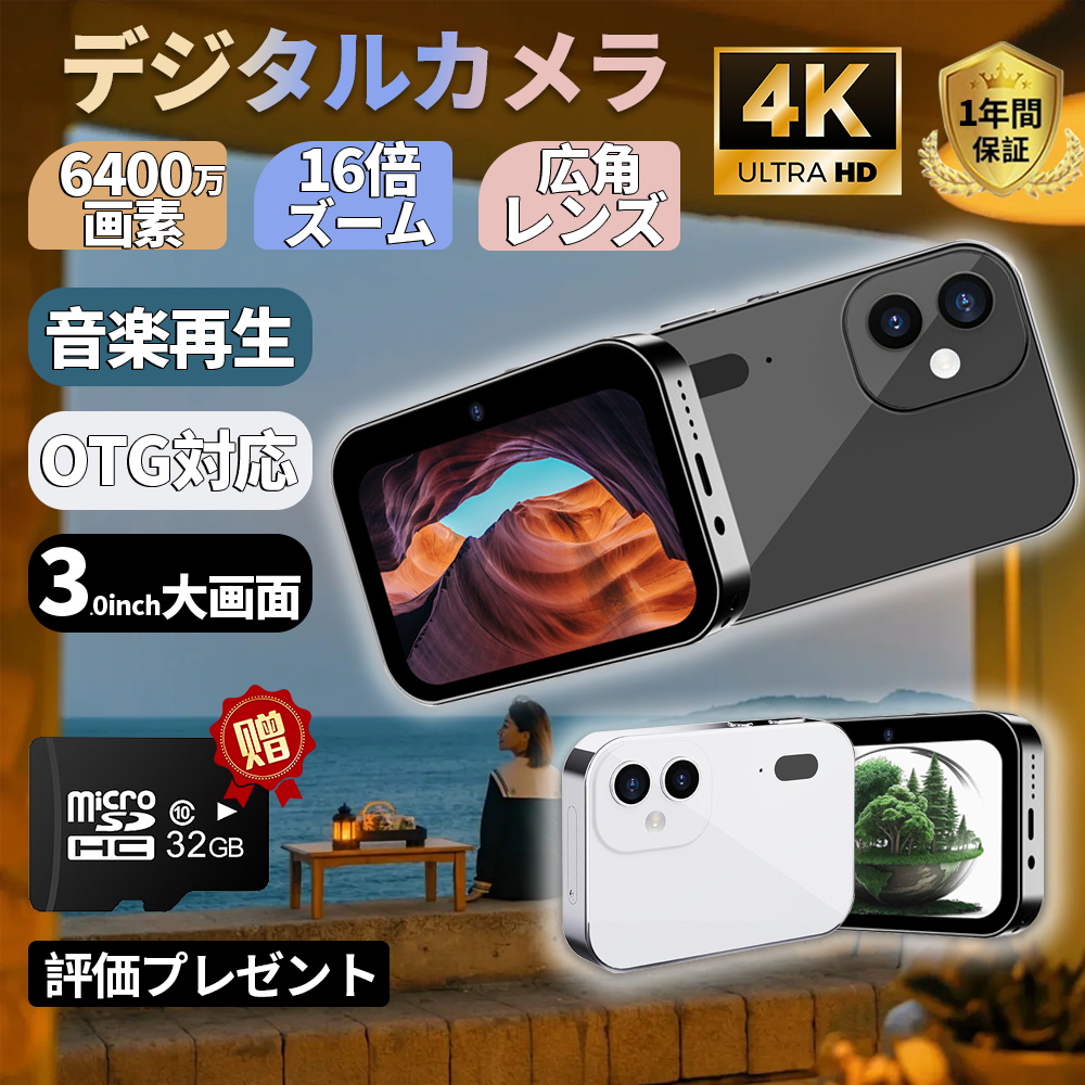 カメラ デジタルカメラ 4K 6400万画素 スリーショット 広角レンズ 望遠レンズ オートフォーカス 3inch タッチスクリーン 音楽再生 MP3 MP4 録音 2026 新品