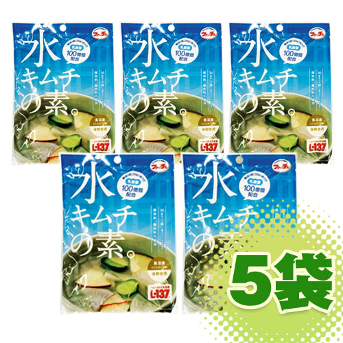 [原材料] 砂糖(国内製造)、食塩、ごま、米粉、生姜パウダー、粉末にんにく、椎茸粉末、風味調味料(乳成分を含む)、乳酸菌含有食品 (デキストリン、加熱乳酸菌) / 調味料(アミノ酸等) [商品説明] 福島のキムチ屋さん「ファーチェ」が提供する水キムチの素。 夏バテ防止に! 暑い夏にオススメの水キムチです。 キュウリやダイコン、白菜、リンゴなどの野菜や果物をスライスして、水を入れてまぜるだけで簡単においしい水キムチができる粉末タイプの水キムチの素です。 辛くないので老若男女問わず食べられるし、さっぱりしているので、暑い時期にそうめんや冷麺のお供におすすめです。