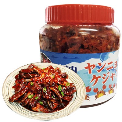 [原材料] 切り蟹、玉ねぎ(ミキサー)、人参、小ネギ、ニンニク(ミキサー)、生姜(ミキサー)、味醂、料理酒、粉末唐辛子、砂糖、ほんだし、醤油(遺伝子組み換えでない)、水あめ、調味料等、(アミノ酸等) [商品説明] ケジャン(蟹醤/Gejang)は韓国料理の一つで、生のワタリガニを塩、漬け込みダレに漬けて 熟成させた料理です。 「辛いケジャン」は甘くてやわらかいカニの身を吸ったり、殻ごと食べて後で殻だけ出したり、鍋に入れても蟹のダシが出ておいしいです。 カニの甘さに特製甘辛ソースが絡み合い絶妙な味わいを楽しめます。