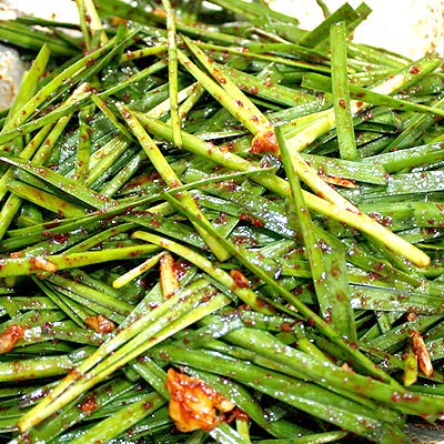 [原材料] ニラ(日本)、唐辛子粉、塩、砂糖、炒りごま、にんにく、イワシエキス、アミの塩辛、調味料(アミノ酸等) [商品説明] 辛くて独特な香りと味が食欲のない夏に食べると美味しいキムチです。 ニラキムチは塩を使わずにイワシエキスを 使うのが伝統製法です。 薬味に入れるイワシエキスによりニラキムチの深い味が体験できます。