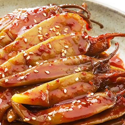 [原材料] 唐辛子、塩、水飴砂糖、パプリカ、にんにく、いわしエキス、MSG、ごま油、いりごま [商品説明] 激辛唐辛子を辛味噌にぬか漬けしたあと各種調味料であえてあります。 食欲のない時はぜひどうぞ!