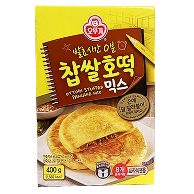 [原材料] ホットクミックス粉 原材料名: ミックス粉 (小麦粉、 タピオカでん粉、砂糖、 米粉、とうもろこしでん粉、 じゃがいもでん粉、とうもろこし油、食塩、 ベーキングパウ ダー、全粉乳)、 ジャムミックス (黄砂糖、果糖、砂糖、 ローストピーナッツ、 小麦粉、 とうもろこし油、サトウキビ粉末、焙煎ごま、 デキストリン、シーズニングパウダー (コー ヒー粉末、 カカオ粉末)、 シナモンパウダー、 緑茶抽出物)、 イースト(ドライイースト) /かんすい、 増粘剤 (重曹) 調味料(アミノ酸等)、 着色料 (ビタミンB2)、酵素、 膨張剤、(一部に小麦・乳成分・ごま・落花生を含む) [商品説明] フライパンで簡単に作れるホットクミックスです。 粉にイーストが入っているので別途の準備が要りません。 ホトックジャムにピーナッツの粉が入って甘い蜂蜜のジャムのような仕上がりになります。 [美味しい作り方] 1.生地作り:ボールにぬるま湯 (40〜45℃、 180ml) とイースト (3g) を入れ、よく混 ぜ合わせます。 その上にミックス粉を入れ、 しゃもじでやさしく 5〜10分程こねます。 2.形作り手にサラダ油を塗り、生地を適当量 (約 60g) を平らにして (直径9cm位、 厚さ1cm 弱)中央にジャムミックス (約12g、 小さじ2)を乗せ、こぼれないように丸く包み込みます。 3.焼く:温めたフライパンに油をひき、 閉じ目を下にして弱火でほんのりきつね色になるまで 焼いたらひっくり返して裏面を更に1〜2分焼きます。 フライ返しで押しながら焼きます。 ※注意事項:出来上がったホットクを召上る際にジャムミックスが流れ出るおそれがありますの で、ご注意ください。 [栄養成分:100g当たり] エネルギー 390kcal / 炭水化物 82g / 糖類 32g / たんぱく質 7g / 脂質 3.9g / 食塩相当量 1.60g [原産国] 韓国 |