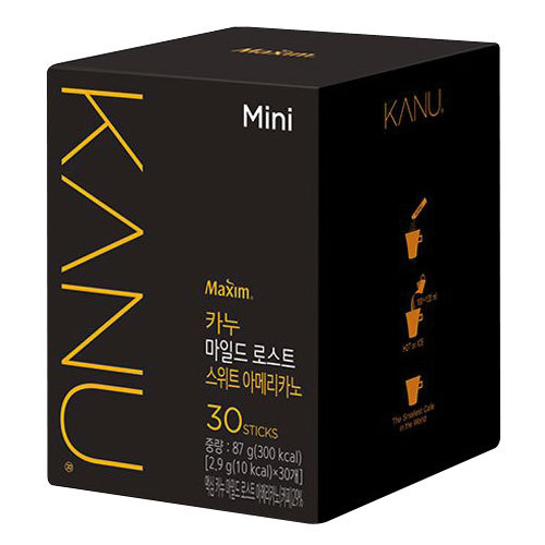 [原材料] ブラウン キシロース シュガー[茶色の砂糖] キシロース、難消化性ミルトデキストリン] Maxim カヌ マルドロースト アメリカーノ(コーヒー豆:コロンビア産50.7%、グアテマラ産29.6%、エチオピア産19.7%) [商品説明] 「KANU(カヌ)」は、甘みのあるインスタントコーヒーが主流だった韓国インスタントコーヒー業界初、ドリップコーヒーの味と香りを再現したMaximのインスタントコーヒーです。 Maxim KANU(カヌ) ミニ マイルドローストスウィートアメリカーノーノは、ミディアムローストに焙煎したコロンビア、グアテマラ、コスタリカ豆をブレンドし、さわやかなフルーツの香りと甘いワインの香りが楽しめます。