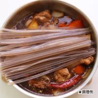 [原材料] サツマイモでん粉、加工でん粉、酸化防止剤(クエン酸)、増粘安定剤(キサンタンガム) [商品説明] 韓国では春雨のことを「唐麺(タンミョン)」と呼びます。 さつまいも澱粉で作った圧搾麺で太めで黒っぽく、弾力があるのが特徴です。
