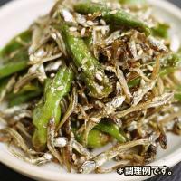 [簡単調理例] 炒め用煮干しを乾煎りしてから、醤油、みりん、水飴、青唐辛子スライス、ニンニクを入れて炒めます。重量のない辛味と、カルシウムが、箸を進めます。