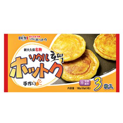[原材料] 小麦粉、黒砂糖、もち米粉、全粉乳、砂糖、ぶどう糖、とうもろこし粉、食用大豆油、ピーナッツパウダー、ひまわり種、食塩、酵母、シナモン、かぼちゃ種、甘味料(ステビア) [商品説明] ホットクは、シナモン入りの黒砂糖をパン生地で包んで焼いた屋台スイーツの代表格。甘みが広がって、もちもちおいし〜いです。