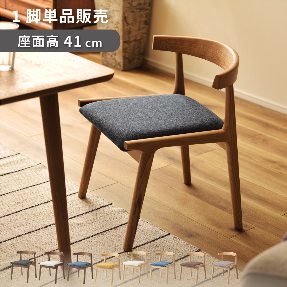 ●アッシュ材の木目が美しいフレームと落ち着いた色合いのファブリックが優しいぬくもりを感じさせる北欧テイストのダイニングチェアです。