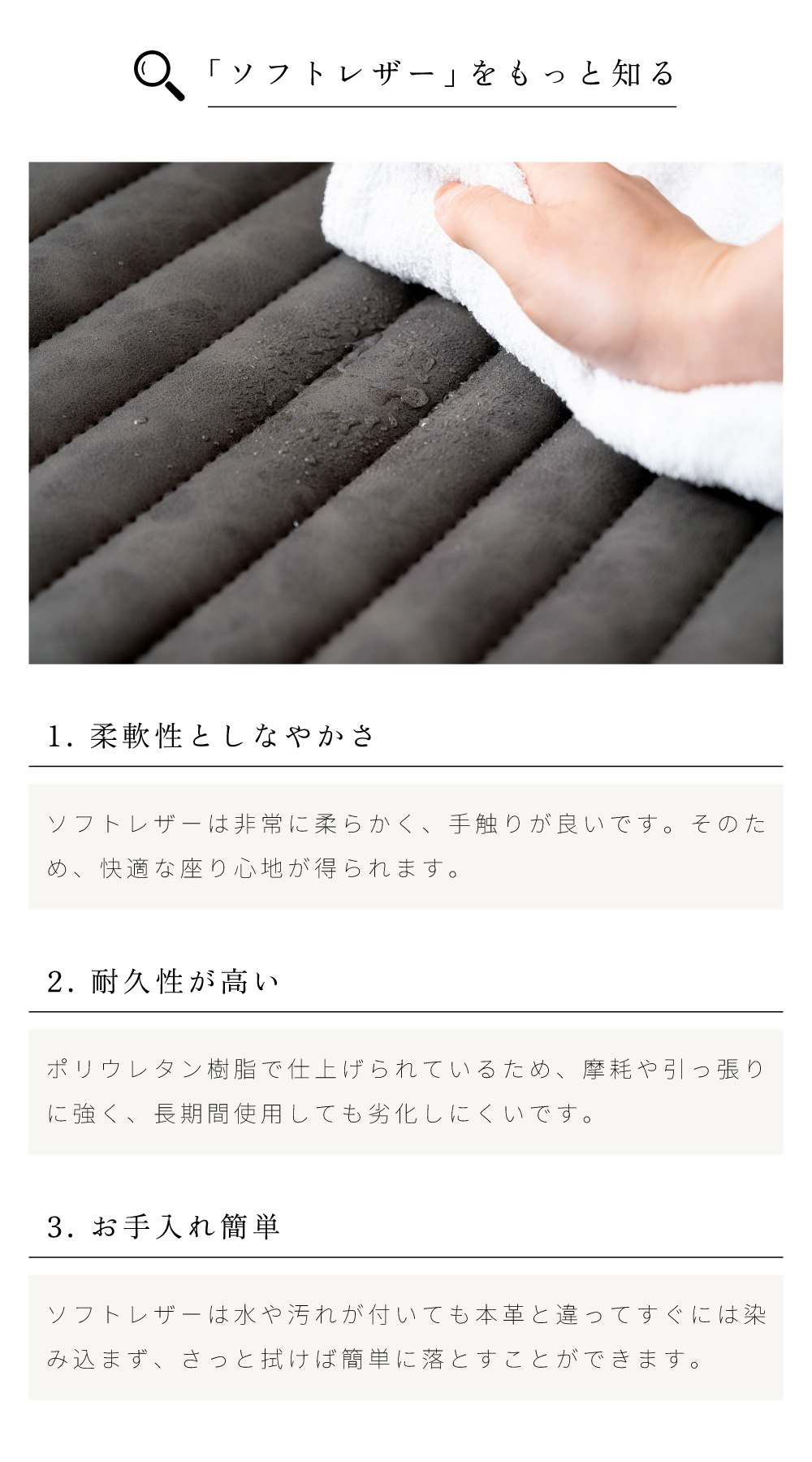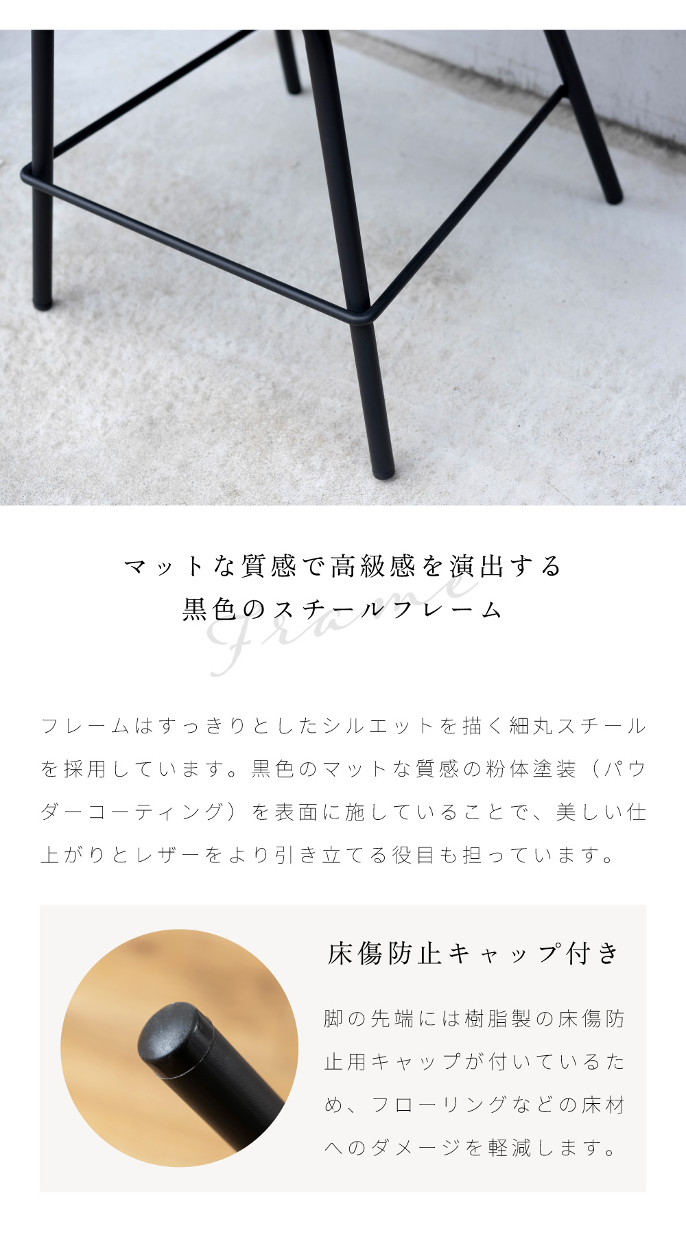 | 材質 | ソフトレザー/スチール(粉体塗装) |