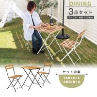 ダイニングテーブルセット 3点セット 2人用 ガーデン アウトドア テラス ベランダ バルコニー ウッドデッキ お庭 テーブル チェア おしゃれ スタイリッシュ 北欧 ナチュラル シンプル 幅55cm 天然木 ガーデンテーブル ガーデンチェア