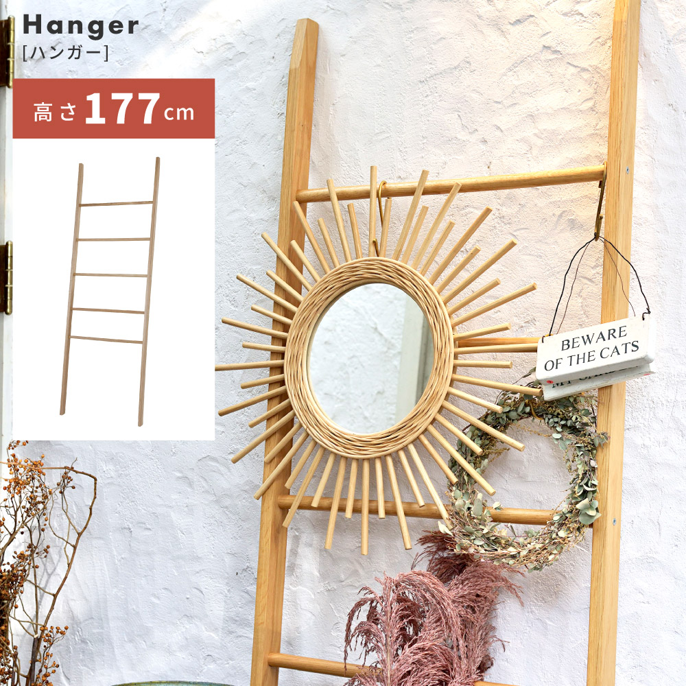 ラダーハンガー ハンガーラック スリム 5段 177cm 木製 はしご ラダーラック シンプル 天然木 見せる収納 タオル ズボン ランドセル 推し活 立てかけ コート 梯子 オーク材 玄関 子供部屋 ナチュラル おしゃれ
