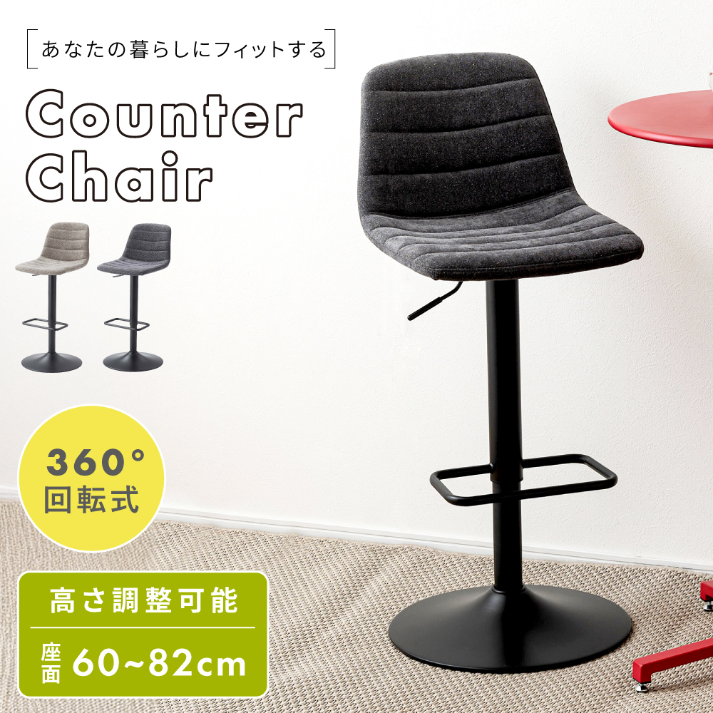 カウンターチェア ハイチェア チェア 椅子 イス スツール 回転 360度 360° アームレス シンプル モダン インダストリアル コンパクト スリム レバー式 レバー昇降 高さ調節 フットレスト 足置き スチール 布地 ファブリック 肘なし 肘掛けなし アームレス 背もたれ カウンター グレー ダークグレー ライトグレー ブラック 黒