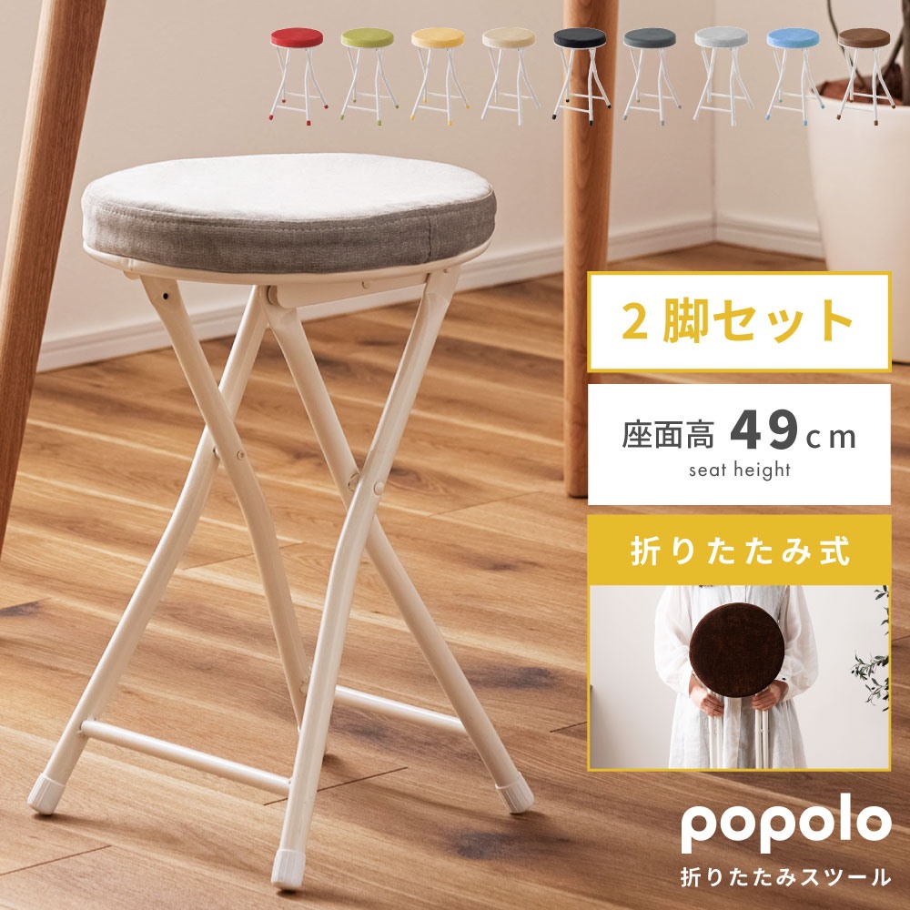 2脚セット 折りたたみ椅子 おしゃれ スツール パイプ椅子 丸椅子 カウンターチェア 北欧 椅子 イス いす 折りたたみ キッチン コンパクト シンプル 玄関 来客