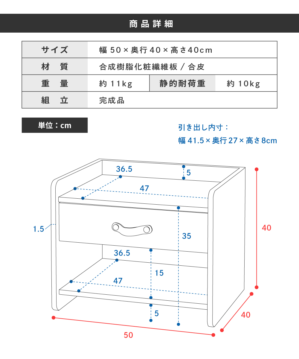 | サイズ | 幅50×奥行40×高さ40cm 【詳しいサイズ図はコチラ】 |
