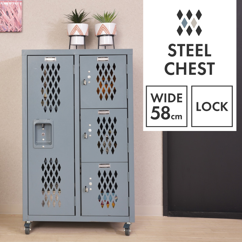 チェスト ロッカー 収納 スチール スチールチェスト キャスター付き グレー おしゃれ ロック 組立簡単