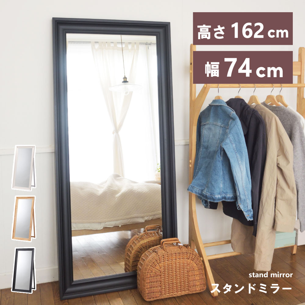 ミラー スタンドミラー 全身 鏡 姿見 全身鏡 アンティーク 飛散防止 長方形 全3色 ブラック/ナチュラル/ホワイト ストッパー付き スタンド