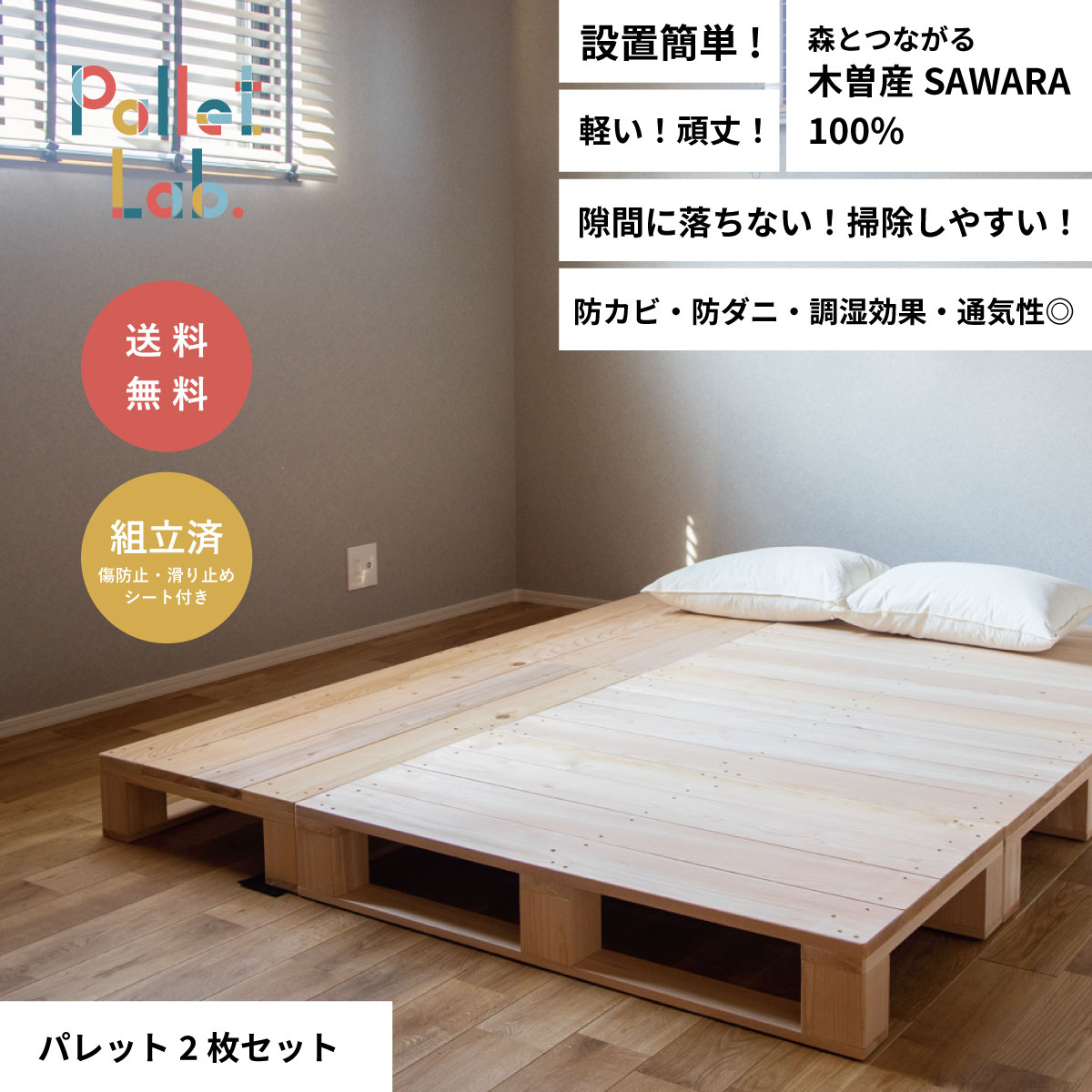 国産材・木製パレット2枚セット/ダブル用オプション/(パレット6枚でダブルサイズになります)/ パレットベッド/ 木曽産椹 日本製 天然木 送料無料