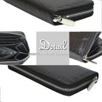 クロコ Crocodile 柄 長財布 ラウンドファスナー サイフ 革 レザー 小銭入れ 札入れ ブラック