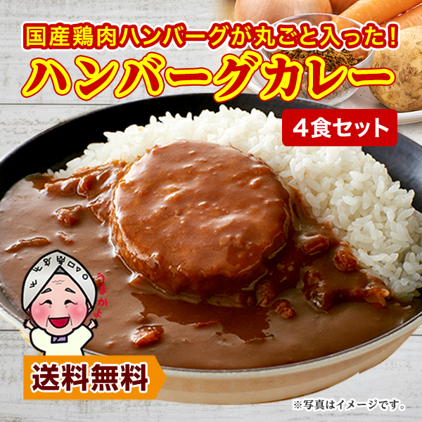 ご飯のお供 訳あり 国産鶏ハンバーグカレー 4袋 中辛 レトルトカレー 長期保存 食品 送料無料 得トクセール お取り寄せ ポイント利用 爆買 ポイント消化