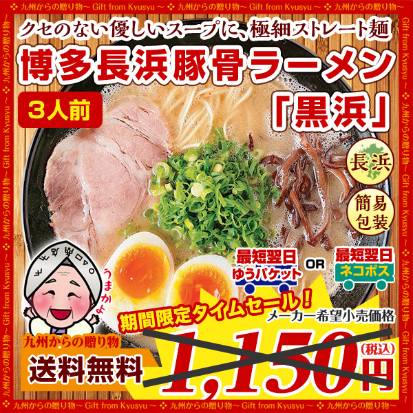 | セット内容 | 博多長浜豚骨ラーメン 黒浜 3人前 |