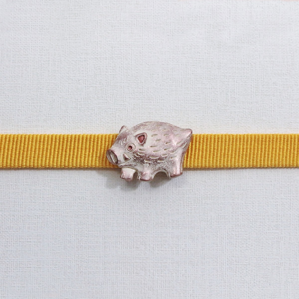 2019年の干支であるイノシシの帯留め。