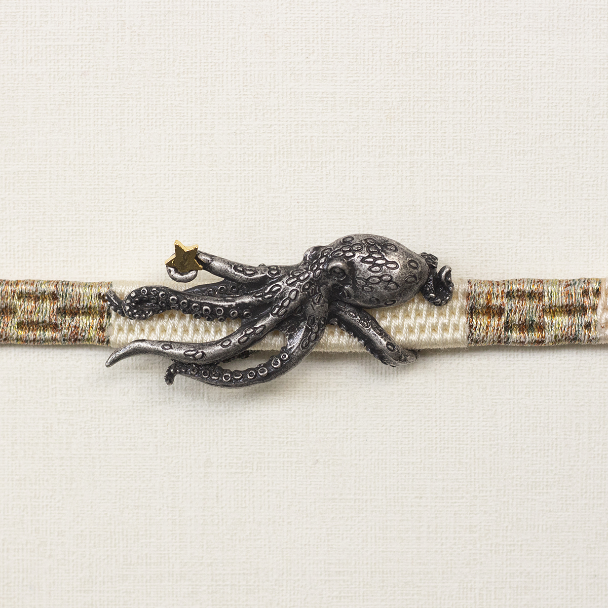 帯締めにからみつくタコの帯留めです。自慢げに星を見せびらかしています。