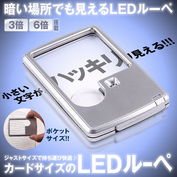 ミニ LED ルーペ 3倍 6倍 カード ポケット サイズ 携帯 ライト 小型 2種類 レンズ 新聞 雑誌 書類 老眼 小さい 文字 ソフト ケース 持ち運び 簡単 便利 MILULU