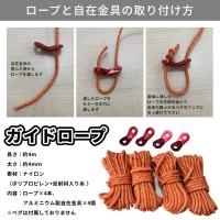 ガイド ロープ 4本 セット オレンジ 径 4mm 長さ 4m アウトドア キャンプ ガイロープ テント タープ 強風 丈夫 反射 視認 アルミ 自在 金具 洗濯 物干し GAIROPP