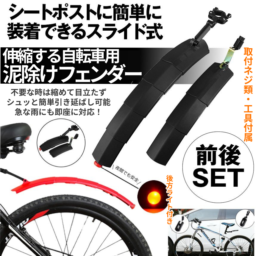 前後セットの伸縮式自転車用フェンダー(泥除け)です。