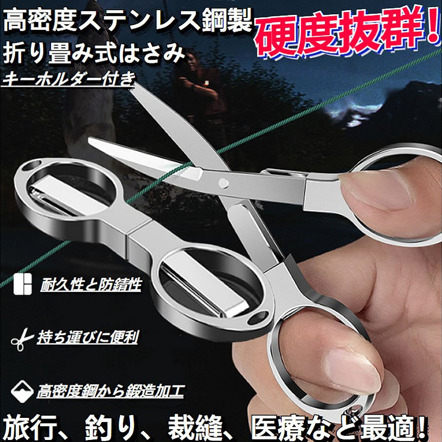 裁縫や救急箱など1つあると便利な折畳み式小型ハサミです。