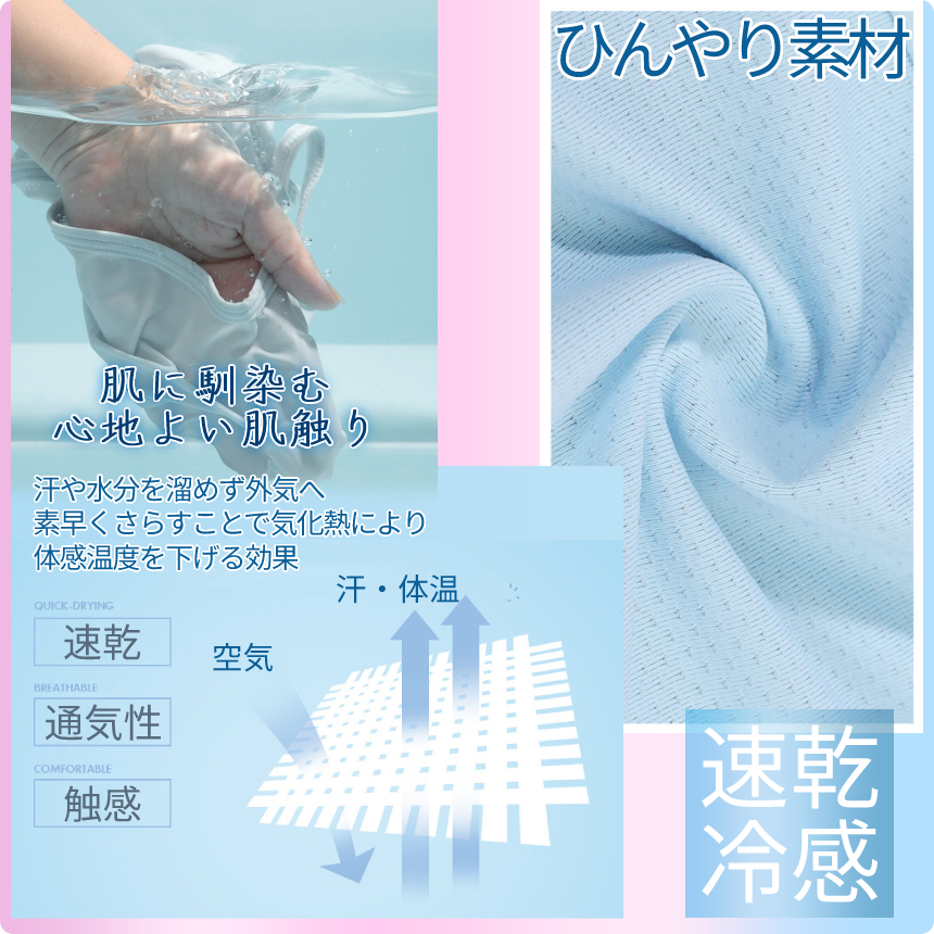 身に着けた瞬間からひんやりとした着心地を感じられます。
