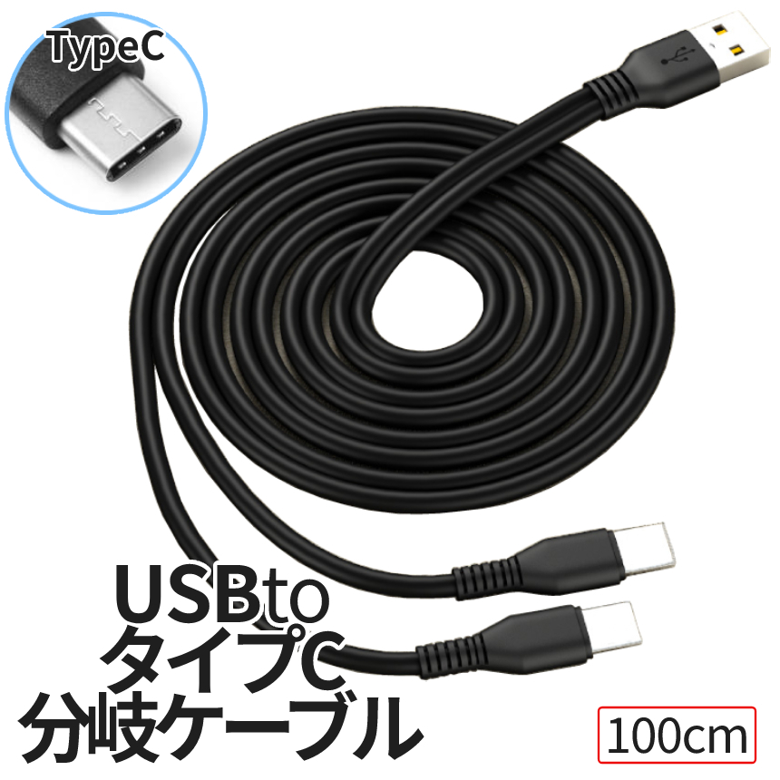 USB type-c ケーブル 二股 1m USBケーブル タイプC 充電ケーブル 同時 充電 分配 分岐 延長 スマホ タブレット iPad Android 2台同時充電 持ち運び 携帯 CEDA100