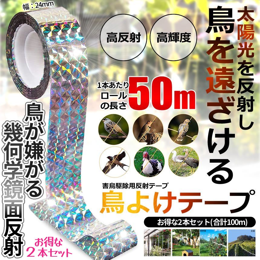 【大人気】鳥よけテープ 50mお得な5本セットは↓コチラ↓