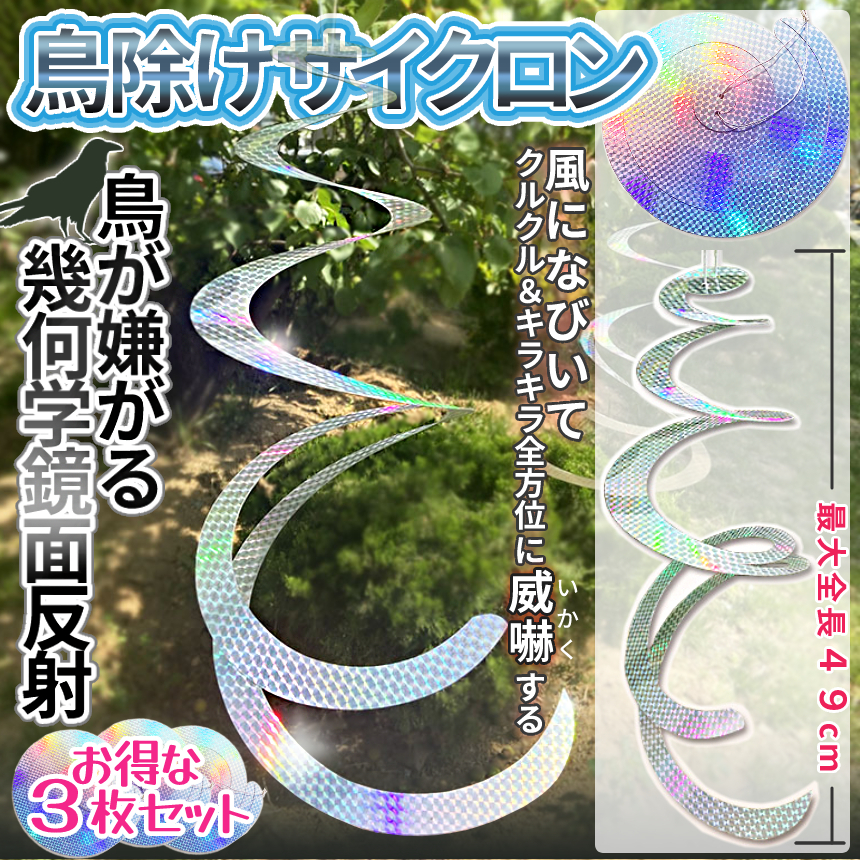 【吊るすだけ♪】鳥除けサイクロン 幾何学鏡面反射材 3枚セットは↓コチラ↓