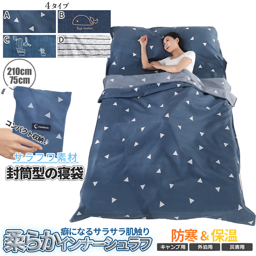 封筒形で動きやすく肌触りにこだわったインナーシュラフです。
