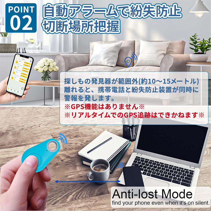 スマホとトラッカーの距離が離れ、切断されると同時にアラートが鳴り、忘れ物や紛失があってもすぐに分かります。
