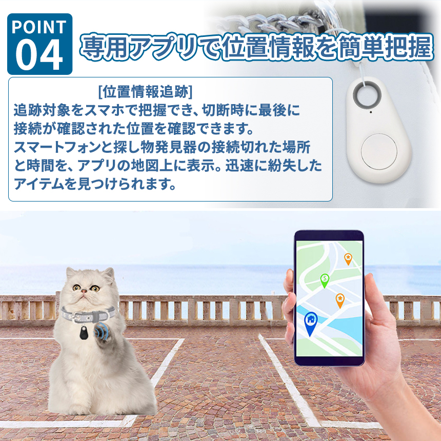 この探し物発見器は、鍵やペット、財布などを追跡するだけでなく、接続している携帯電話の探索にも利用できます。