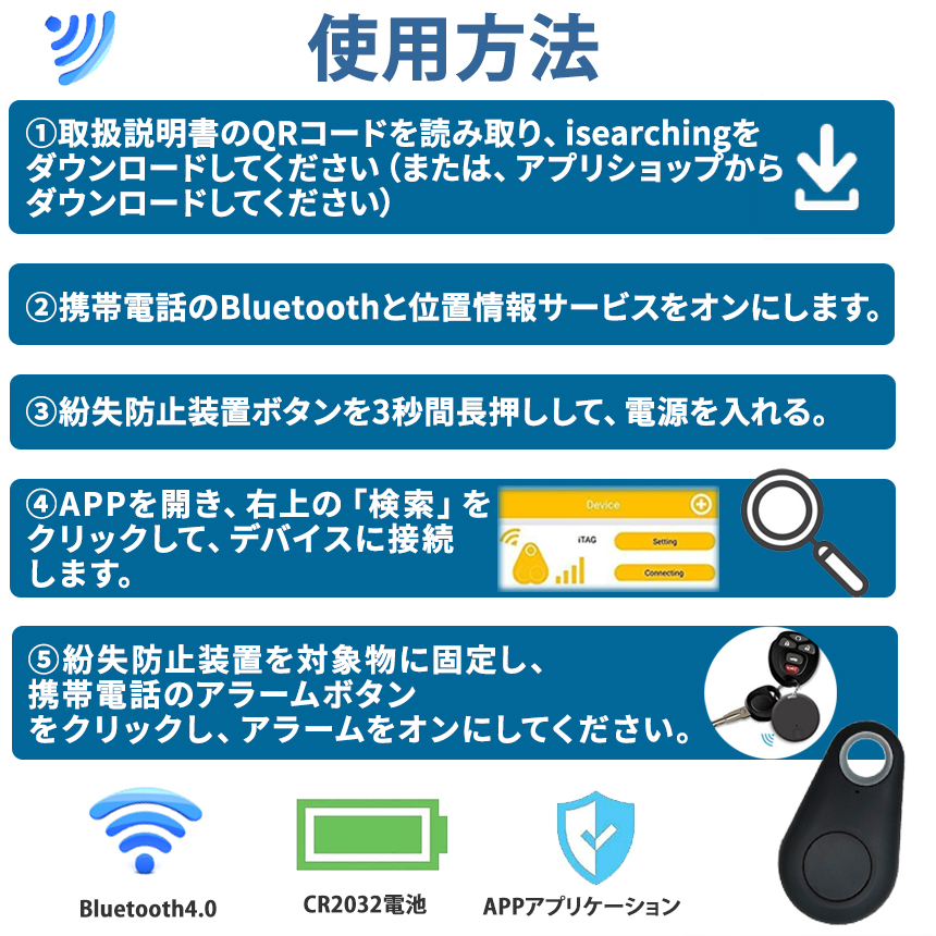 スマートフォンとこの探し物発見器をBluetoothで接続することで、