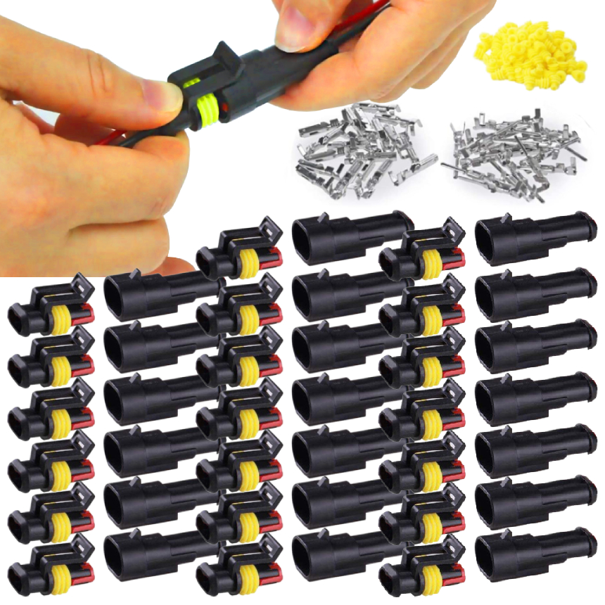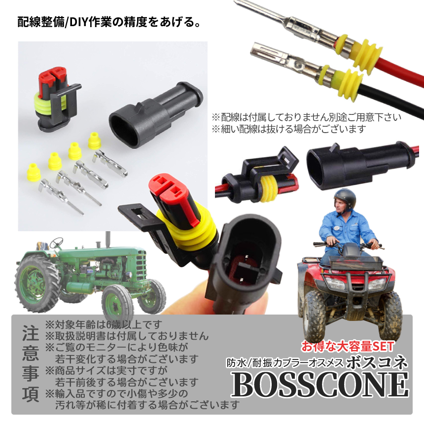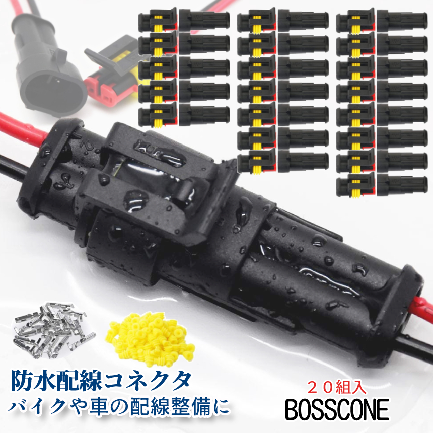 防水 配線 コネクター 耐振 カプラー セット 20組入 車 バイク カスタム 整備 日本語操作手順 爪 防水カプラー オス メス 接続 端子 圧着 電気配線 2-BOSSCONE