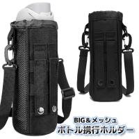 ボトルホルダー メッシュ 頑丈 ブラック 肩紐付き BIG 25cm 肩掛け 収納 ボトルポーチ マグ ペットボトル 水筒 ドリンク キャンプ 登山 アウトドア KYUSBA