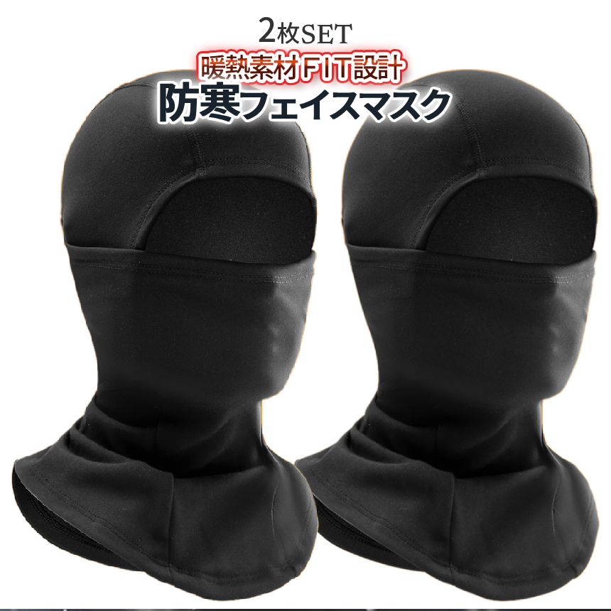 防寒 フェイスガード 冬用 2枚組 目出し帽 暖熱素材 伸縮素材 男女兼用 ブラック ヘルメットインナー フェイスマスク 暖か 裏起毛 寒さ対策 防風 保温 2-BOFACE