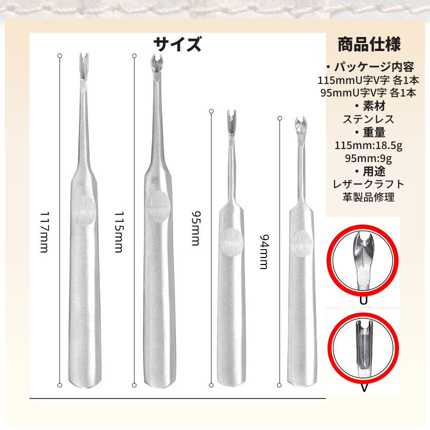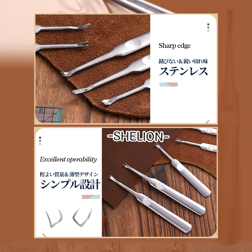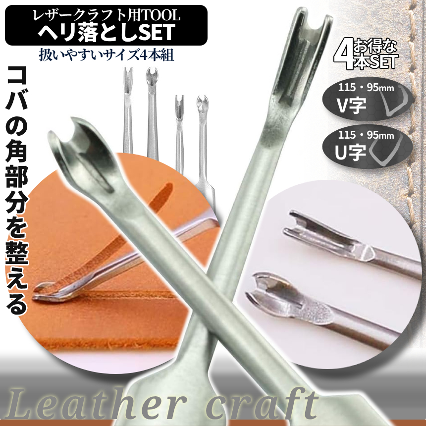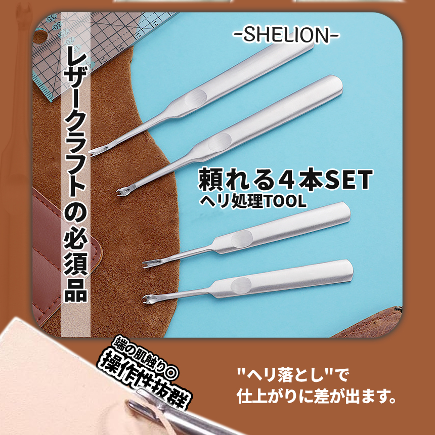 溝堀り へり落とし 4本組 95mm 115mm V字 U字 革細工 革工具 レザー用 コバ へり 革製品 レザークラフト 工具 DIY 鞄修理 革 カッティング 財布製作 SHELION