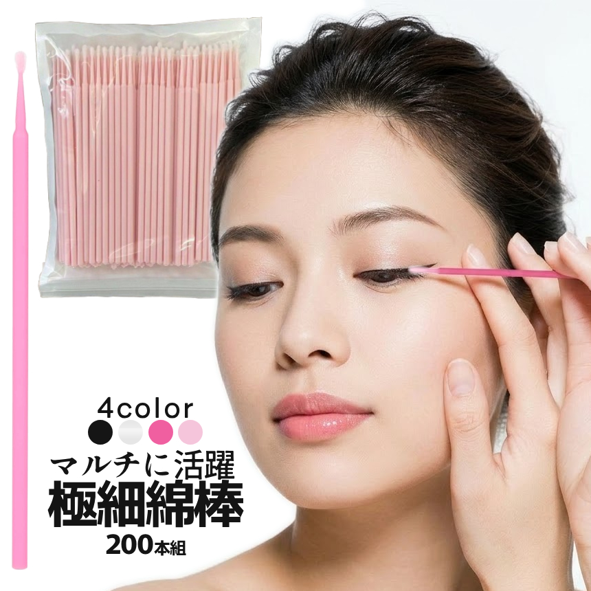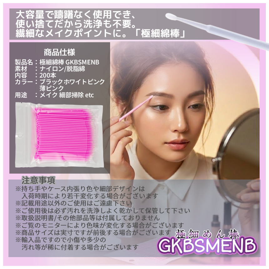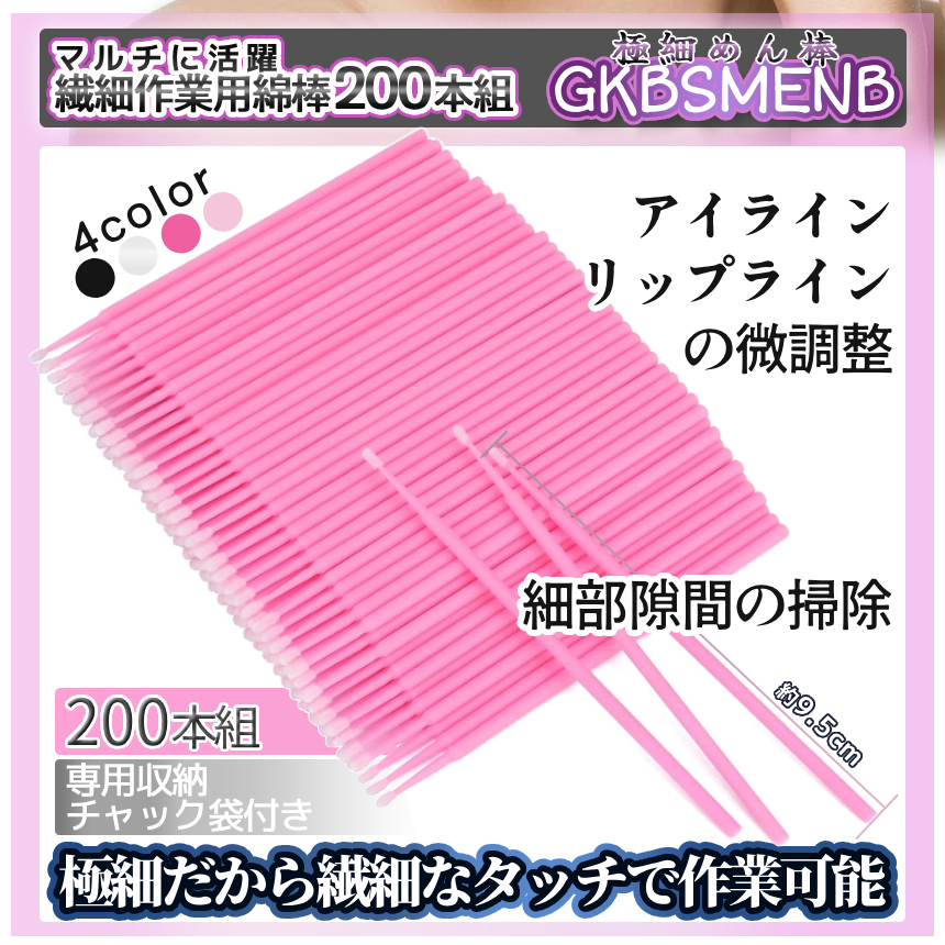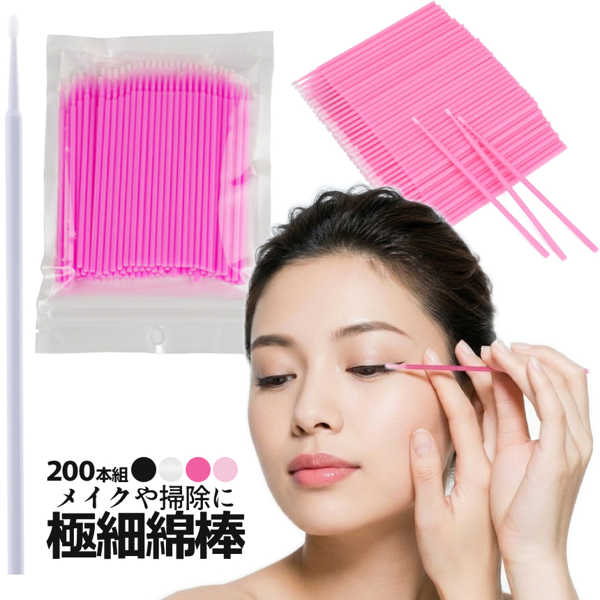 使い捨て 極細 綿棒 200本 大容量 マイクロ ミニブラシ メイク直し アイライン マスカラ まつ毛パーマ マツエク リップ ネイル 繊細作業用 スマホ 掃除 GKBSMENB