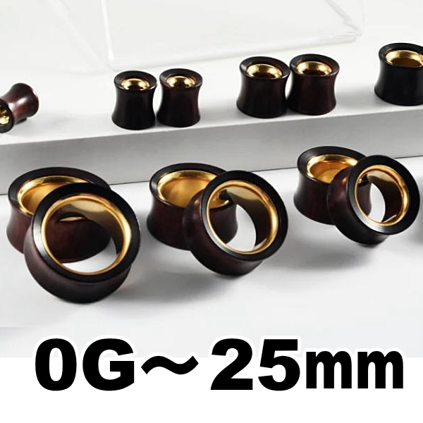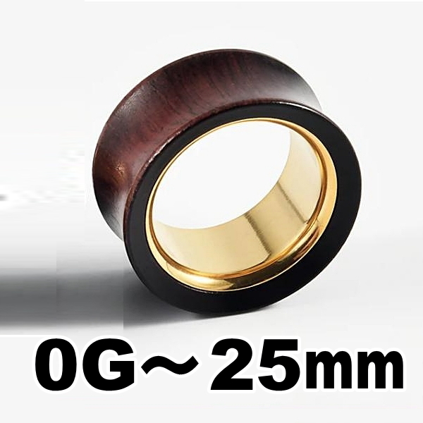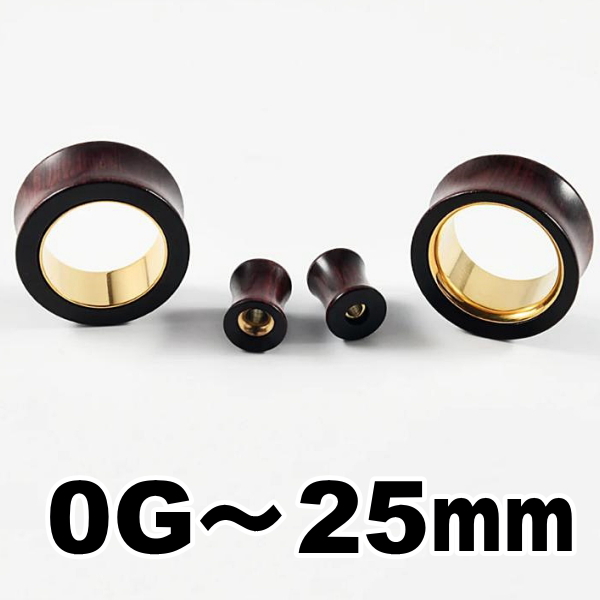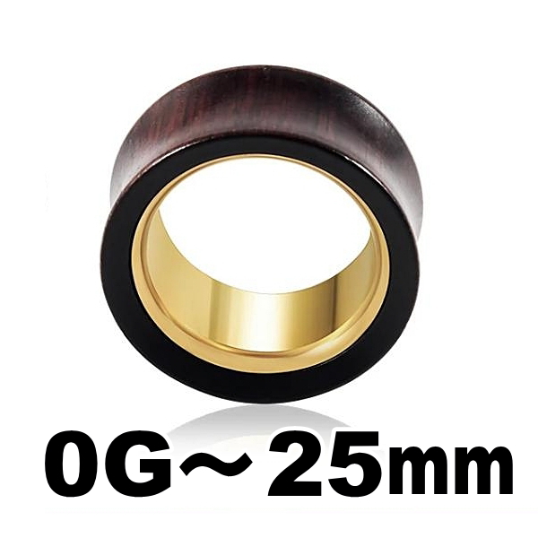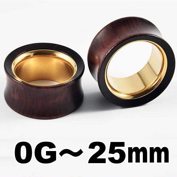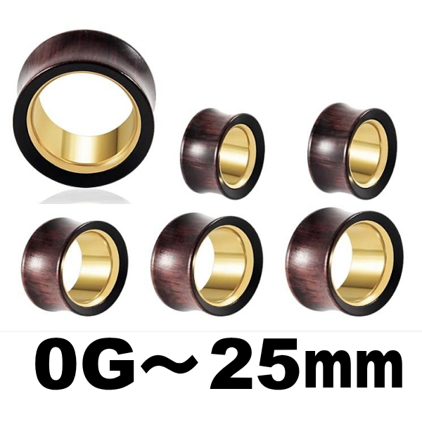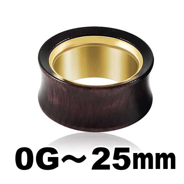 ダブルフレア ウッド ステンレス ゴールド 木 ボディピアス 0G 00G 12mm 14mm 16mm 19mm 22mm 25mm