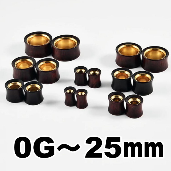 外側はウッドを使用し内側はステンレスを使用したダブルフレアです。ホールトゥにも向いており、ウッドは傷が付きやすいですが内側がステンレスになっているので安心して使用できます。サイズは 0G 00G 12mm 14mm 16mm 19mm 22mm 25mm です。一般的なステンレス製のダブルフレアよりも表示サイズと外径との差が約2mmありますので、とくに0G〜12mmはワンランク小さいサイズが使用しやすいです。このサイズはそのままのサイズでも使用できますが、拡張してすぐの場合は使用するのが難しい可能性があります。