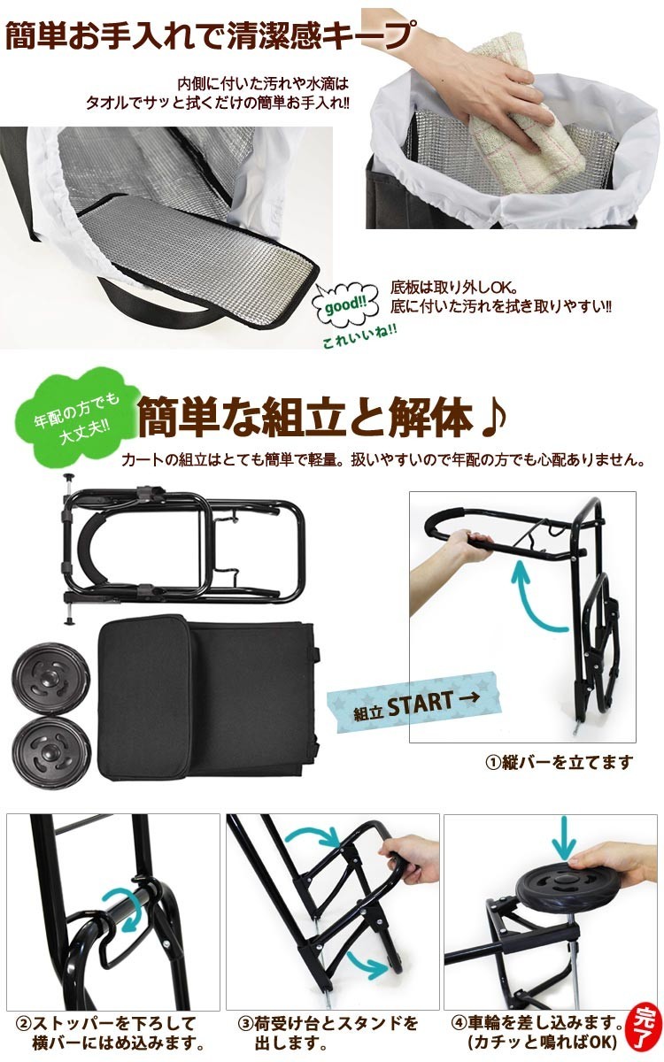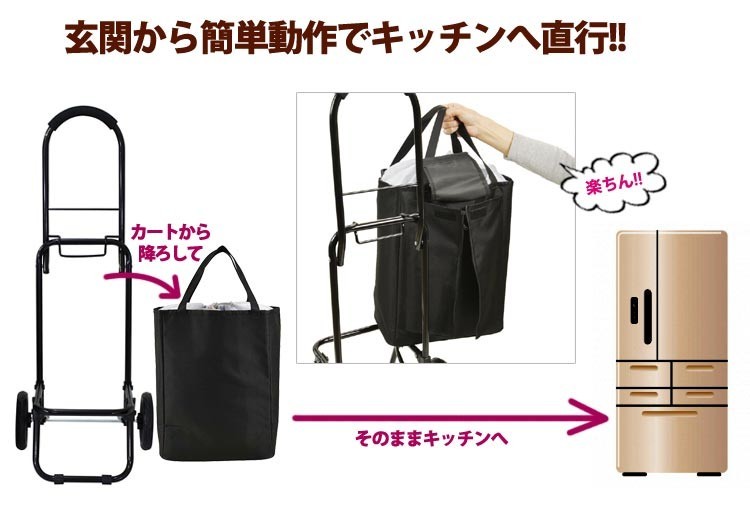 保冷機能有り、お買い物に便利なショッピングキャリーカートトート型