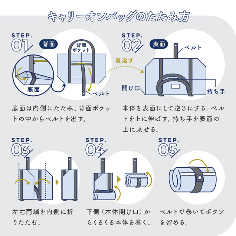 コンパクトに畳めるキャリーオンバッグ 送料無料 キャリーケースのハンドルに通してバッグを固定!荷物が増えてもハンドルに固定してラクに運べるキャリーオンバッグです!