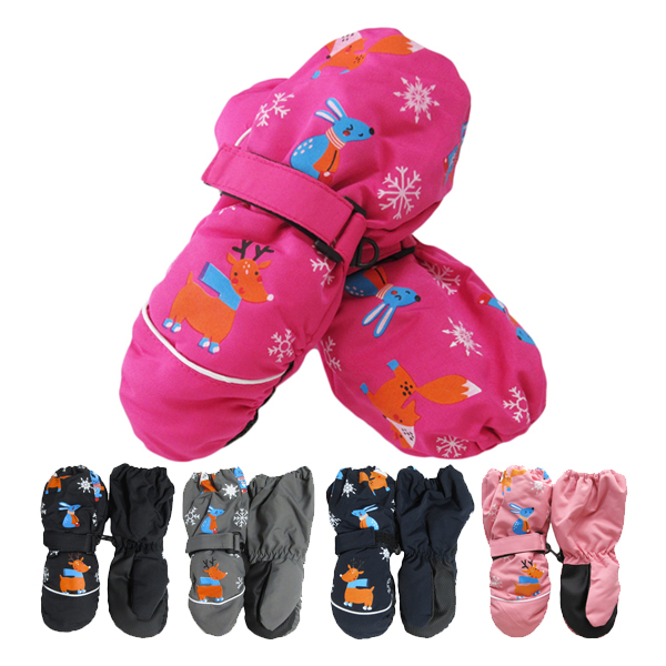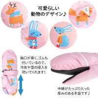 簡単に脱着できる、動物たちが描かれた可愛くて暖かいミトン型手袋です。