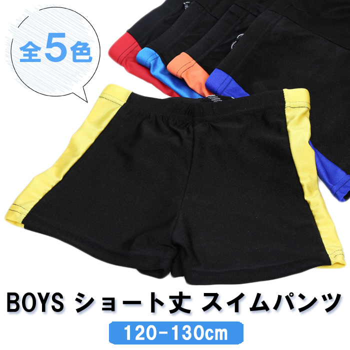 夏セール キッズ 水着 男の子 スイムパンツ スクール水着 ショート丈 1分丈 スイミング 水泳 120-130cm ブラック 無地 小学校 子供 水遊び プール 全5種