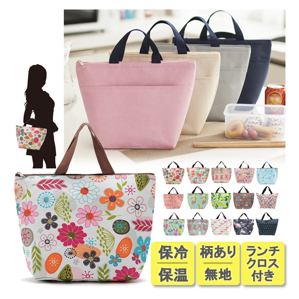 ランチバッグ 保冷 保温 ランチクロス付 弁当バッグ 無地 花柄 動物柄 かわいい レディース メンズ 水筒が入る ポケット付き トートバッグ 通勤 通学 買い物
