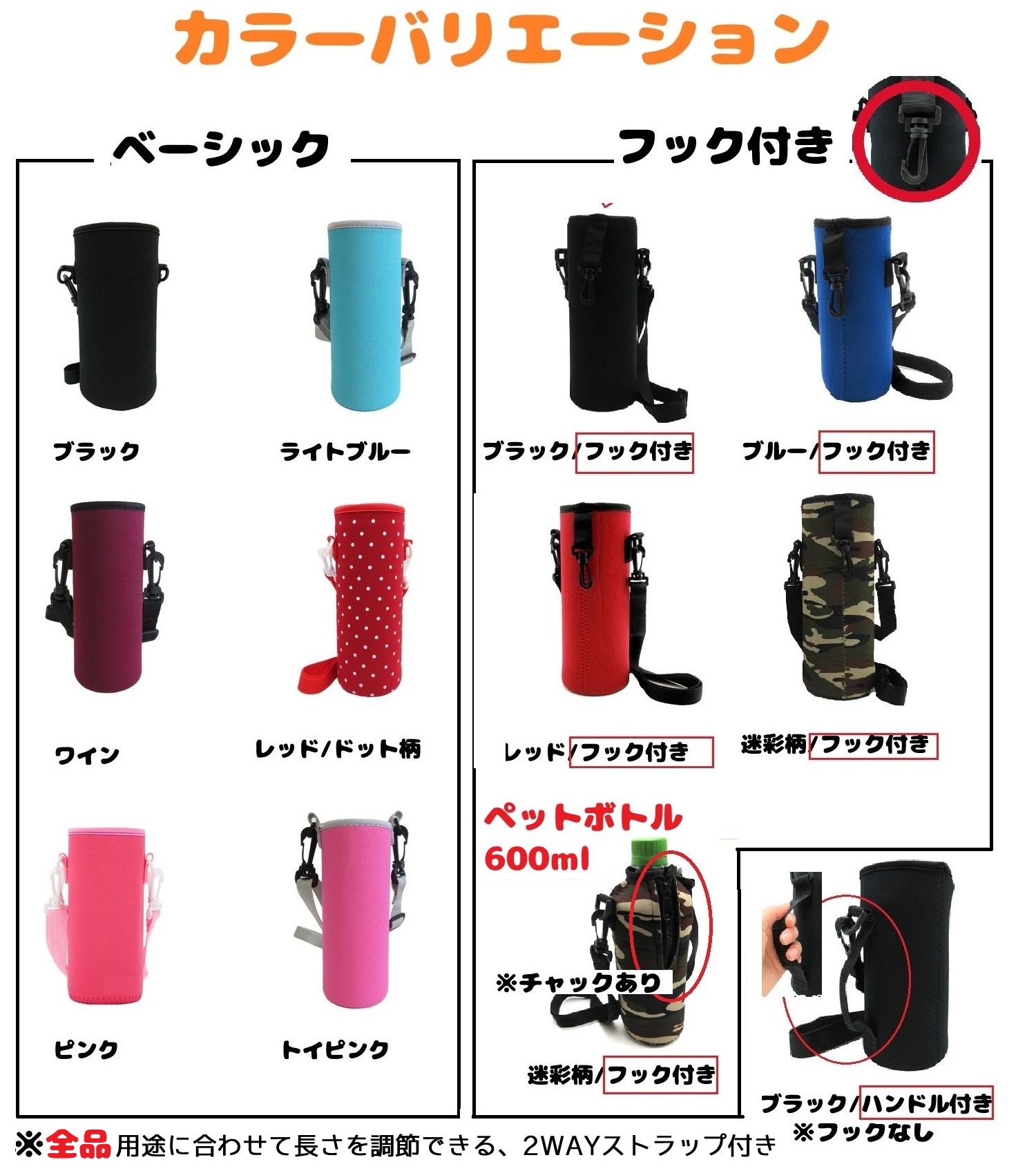 水筒カバー ボトルカバー ショルダーストラップ付 ペットボトルカバー 衝撃吸収 肩かけ 洗濯機で洗える キズ防止 480ml 500ml 600ml 800ml 1L 1.5L 2L